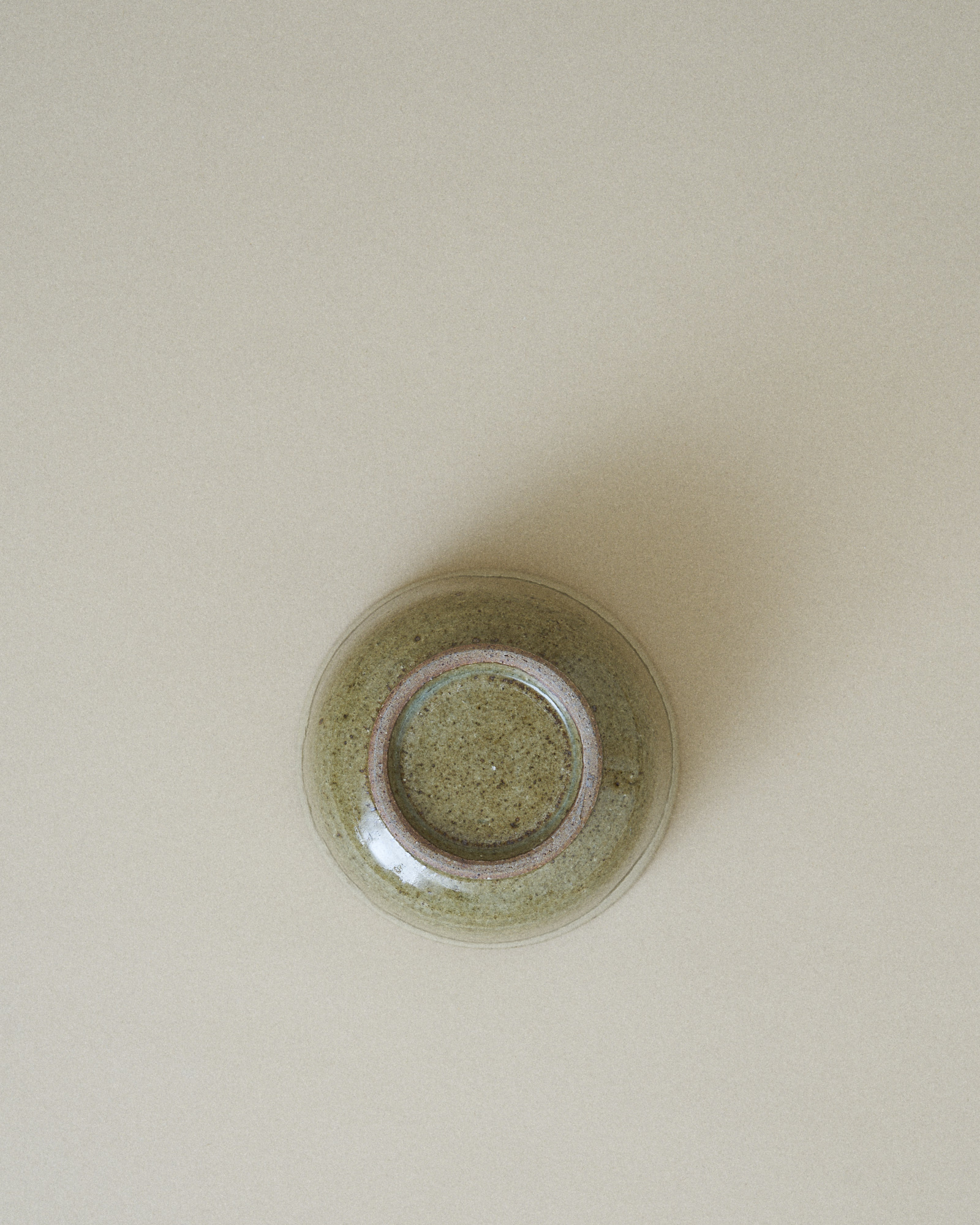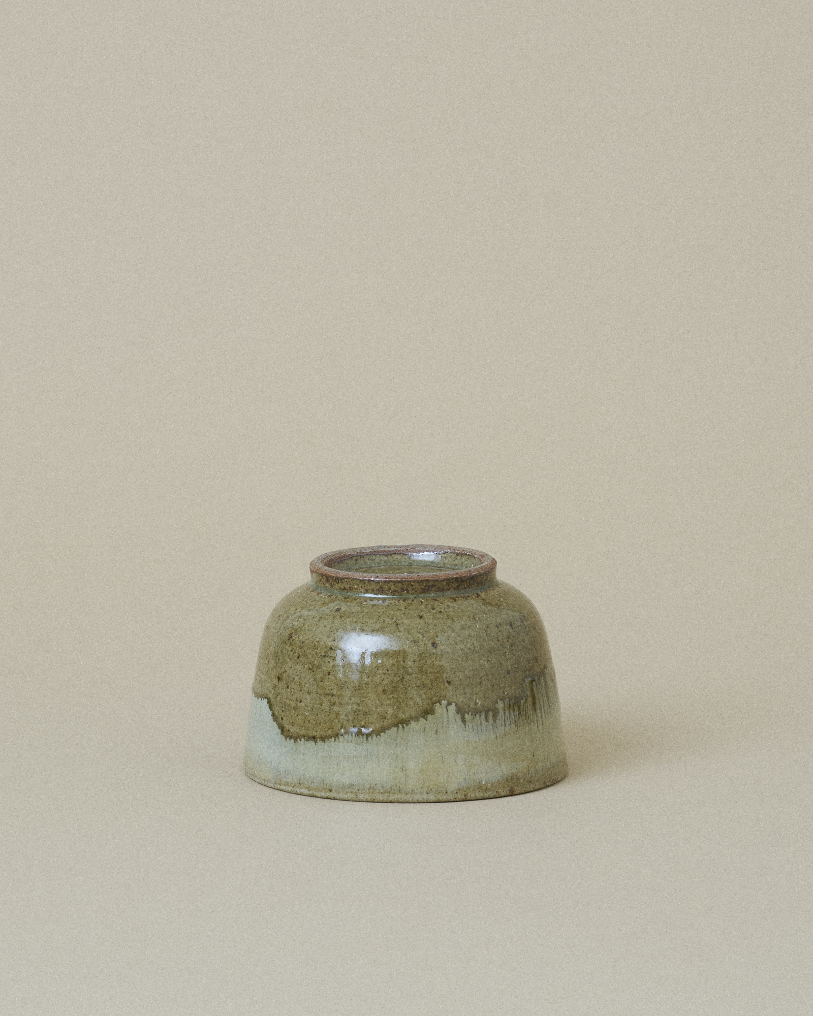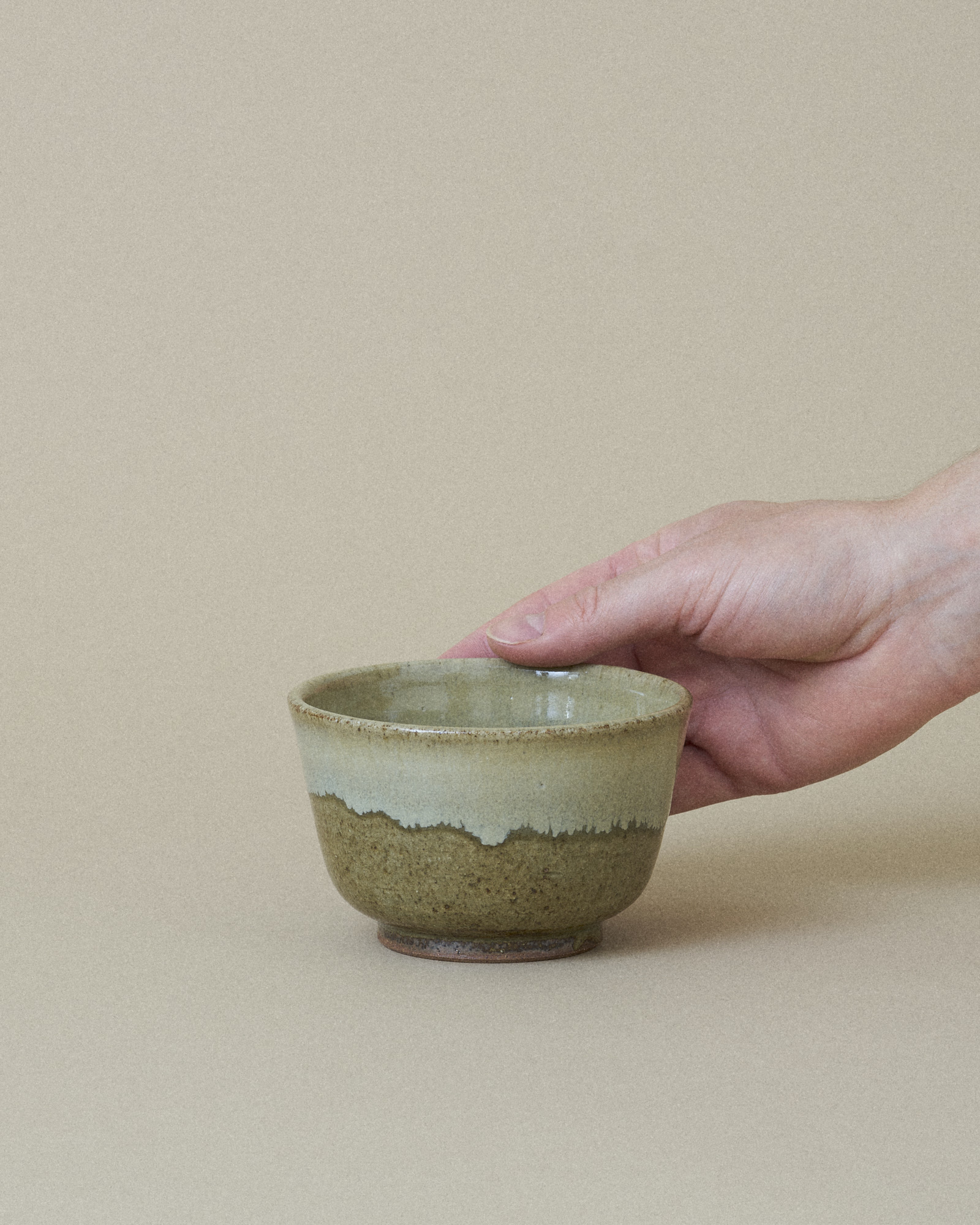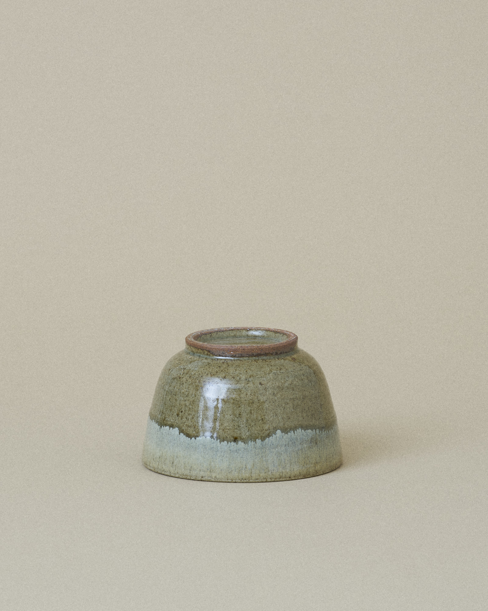A pale sage green glaze cascades into a muted olive-brown base, creating a natural, organic gradient that flows seamlessly across both the interior and exterior of the bowl.