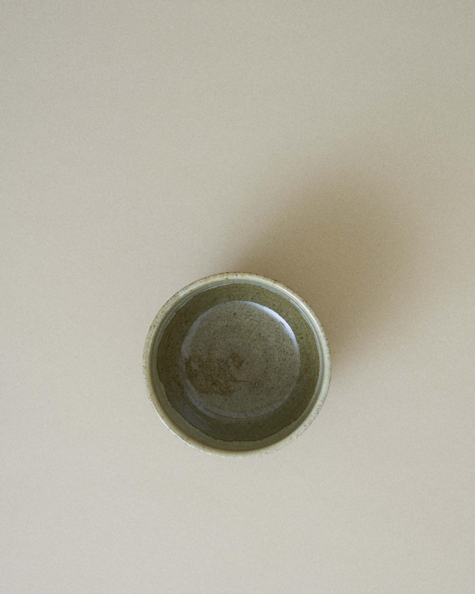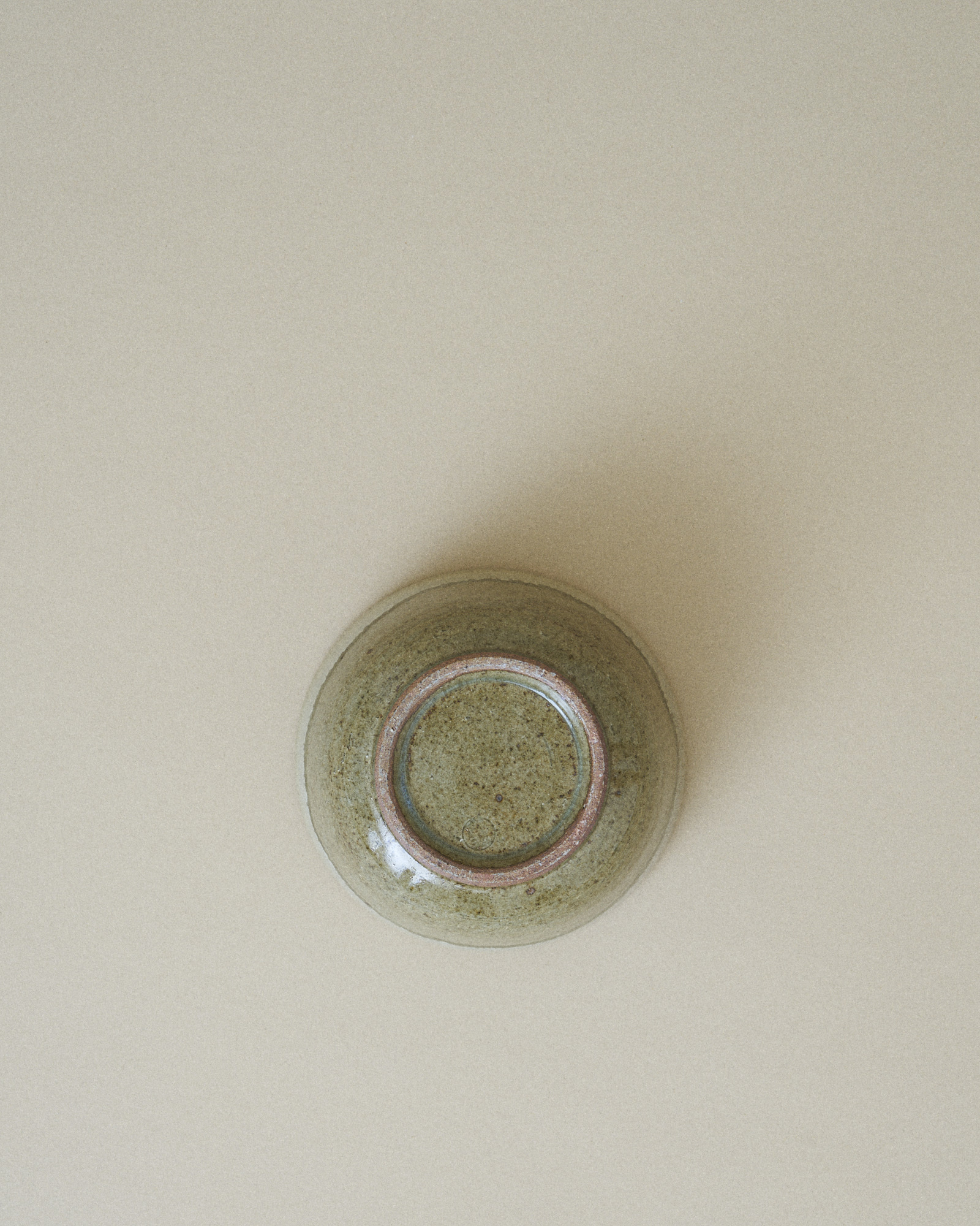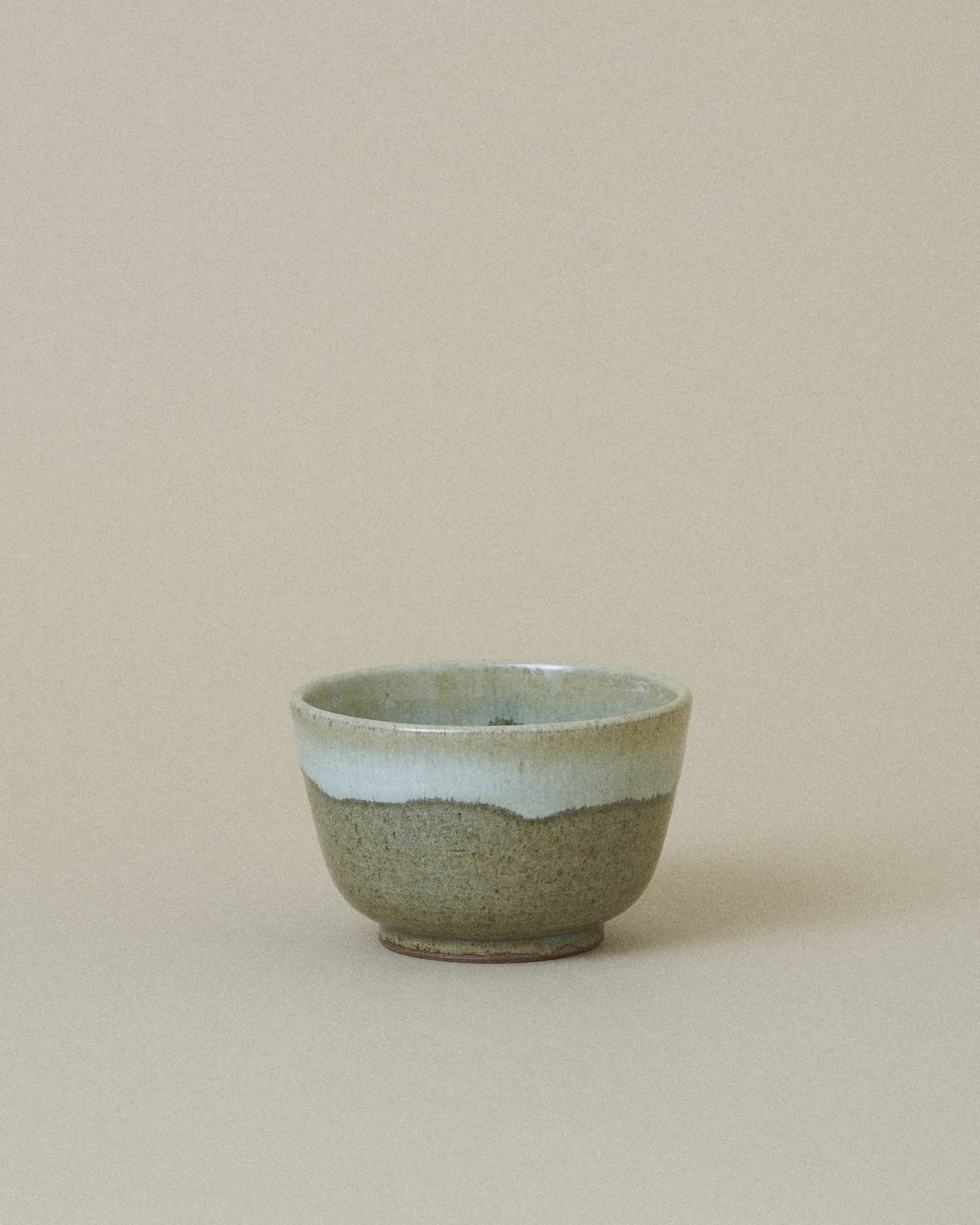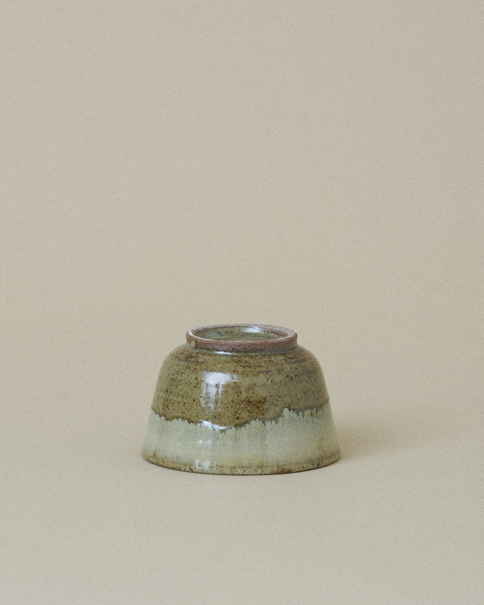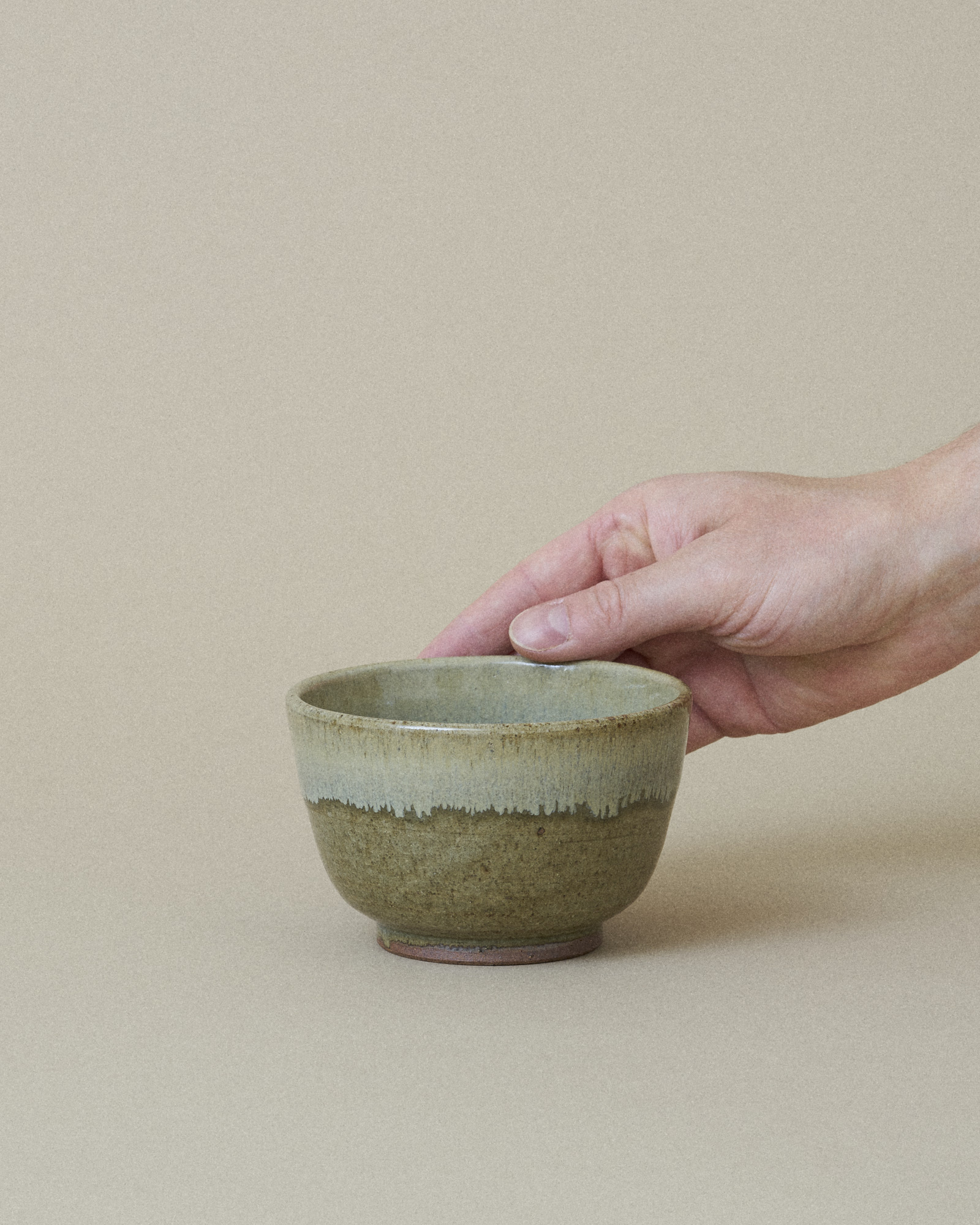 A pale sage green glaze cascades into a muted olive-brown base, creating a natural, organic gradient that flows seamlessly across both the interior and exterior of the bowl.
