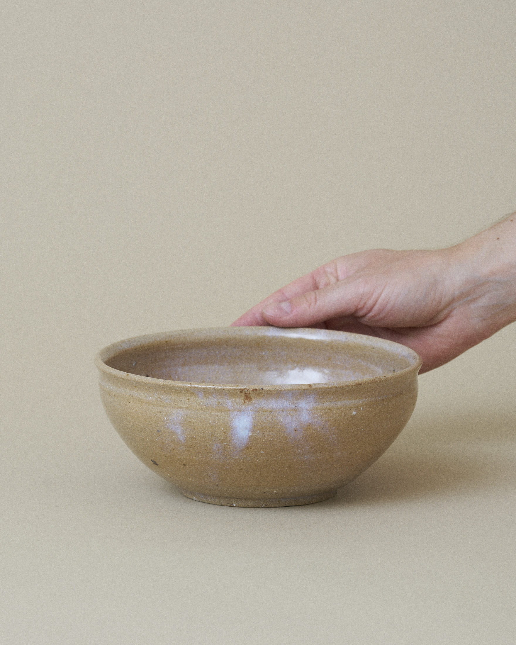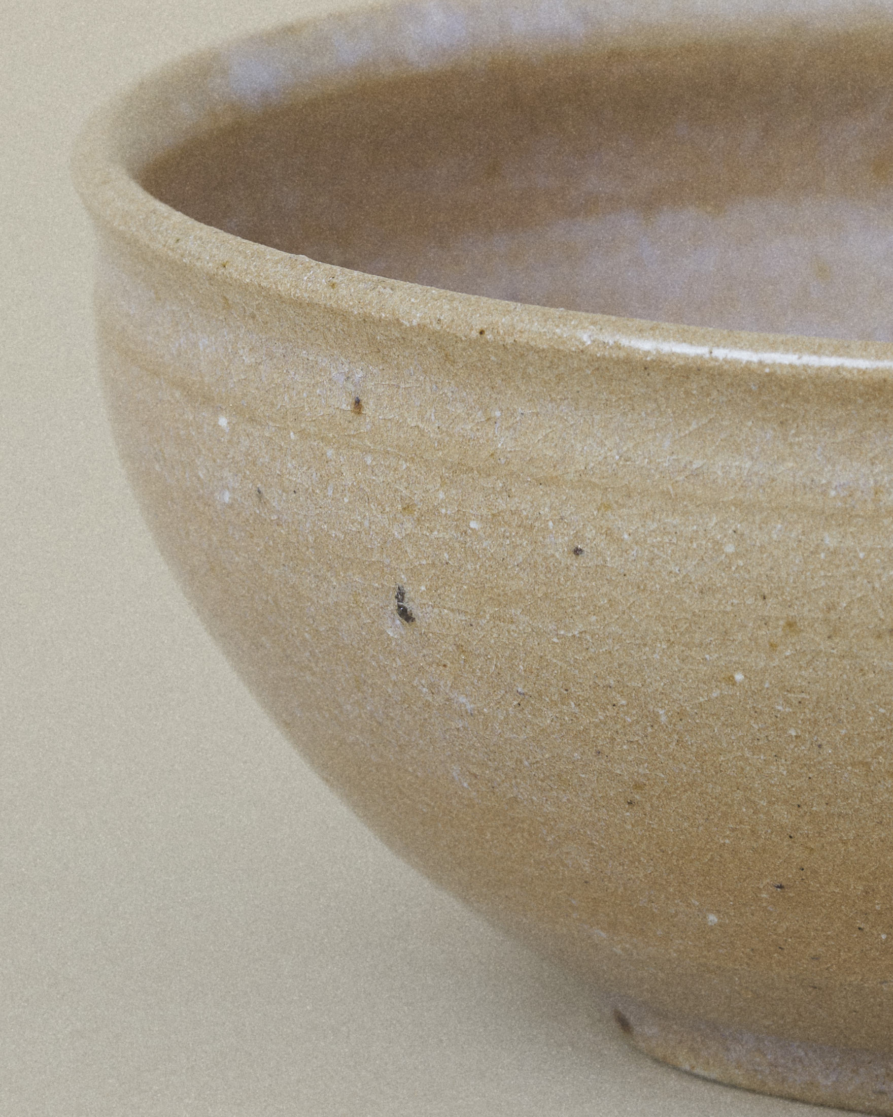 A large bowl in warm beige, softened by cloudy lilac gradients.