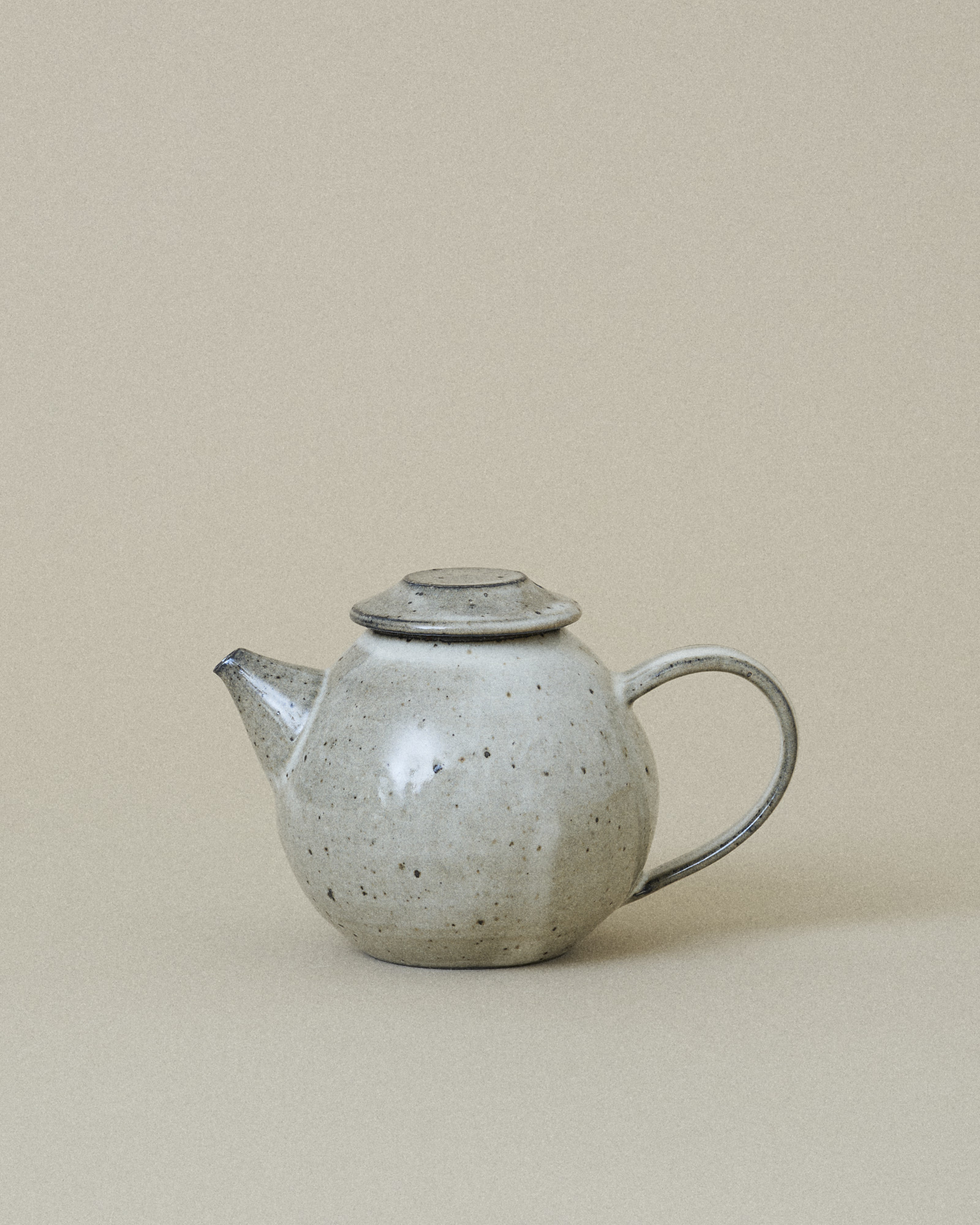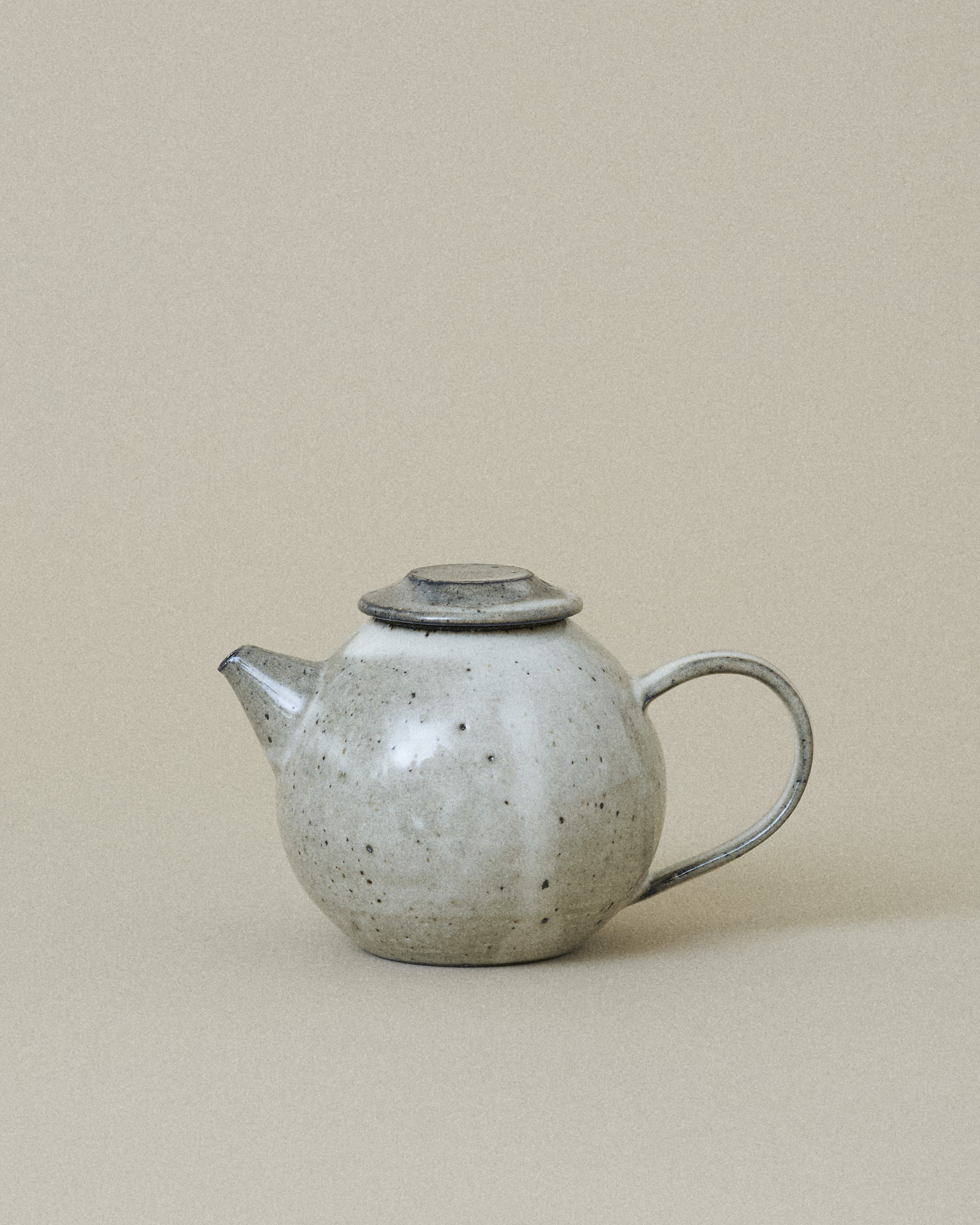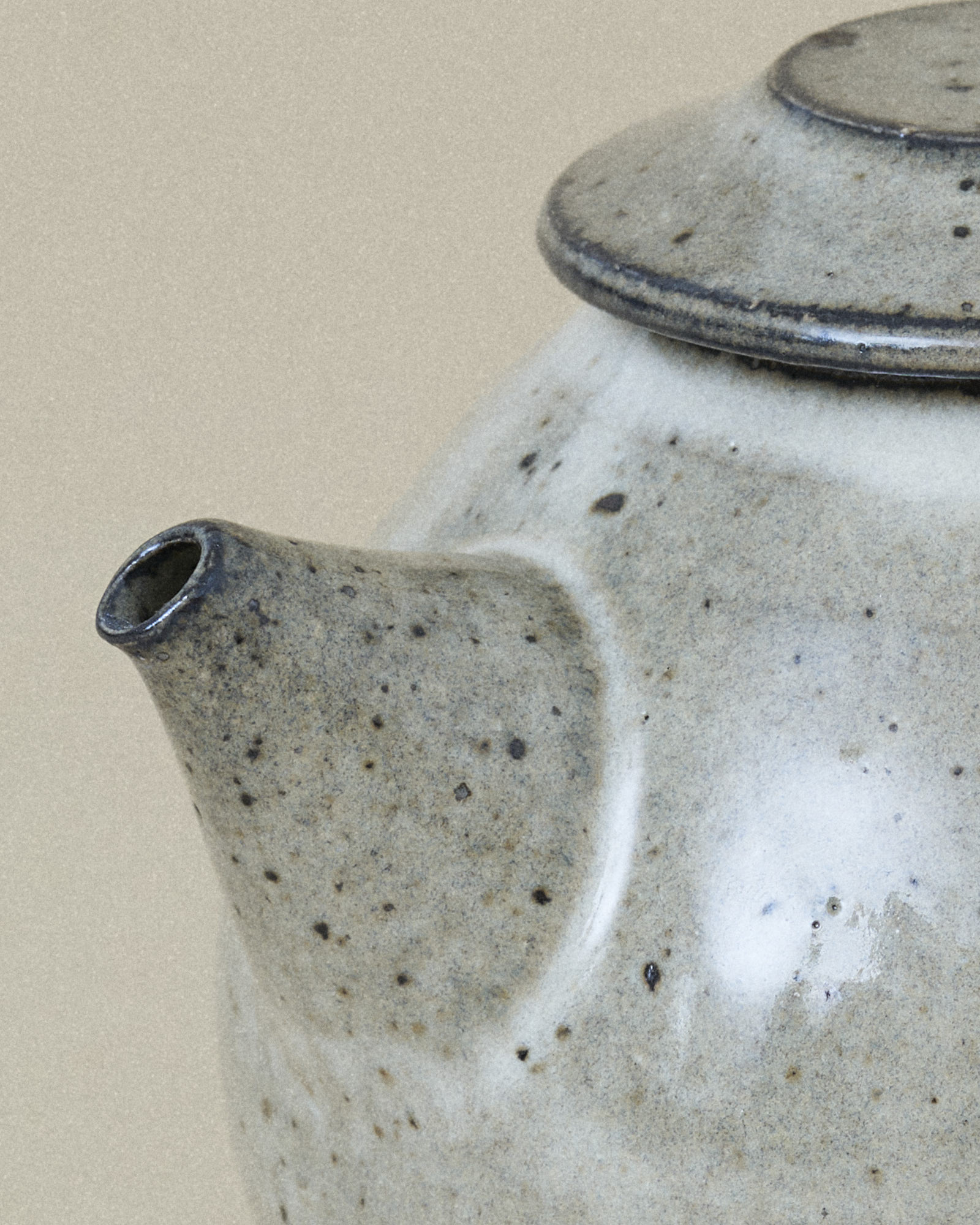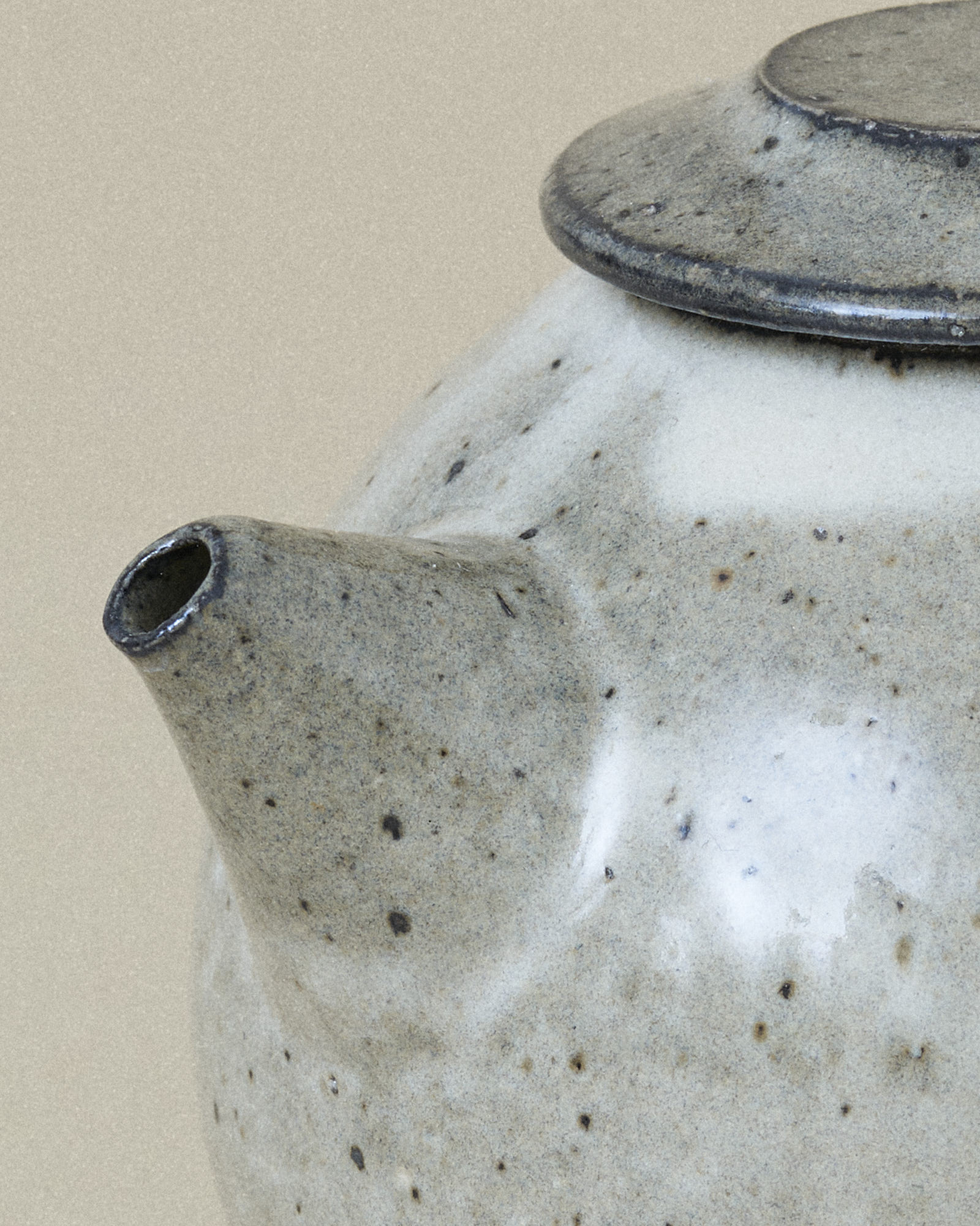 This teapot’s surface is coated in a serene, speckled stone-grey glaze. The exterior showcases artful glaze variations, with white flowing streaks that highlight the teapot’s unique handcrafted form. The seamlessly crafted tea strainer, built right where the spout begins, ensures all tea leaves remain inside while pouring your favorite teas.