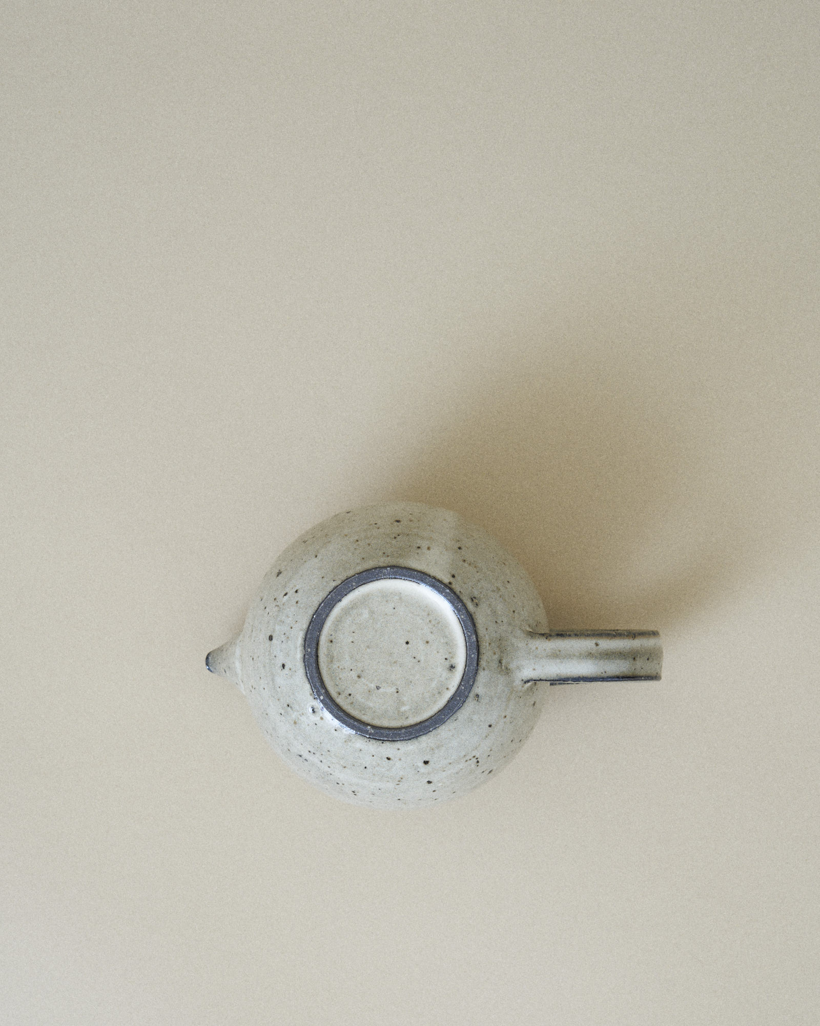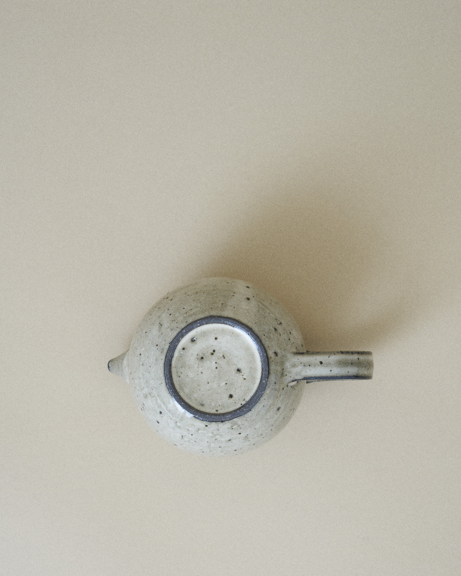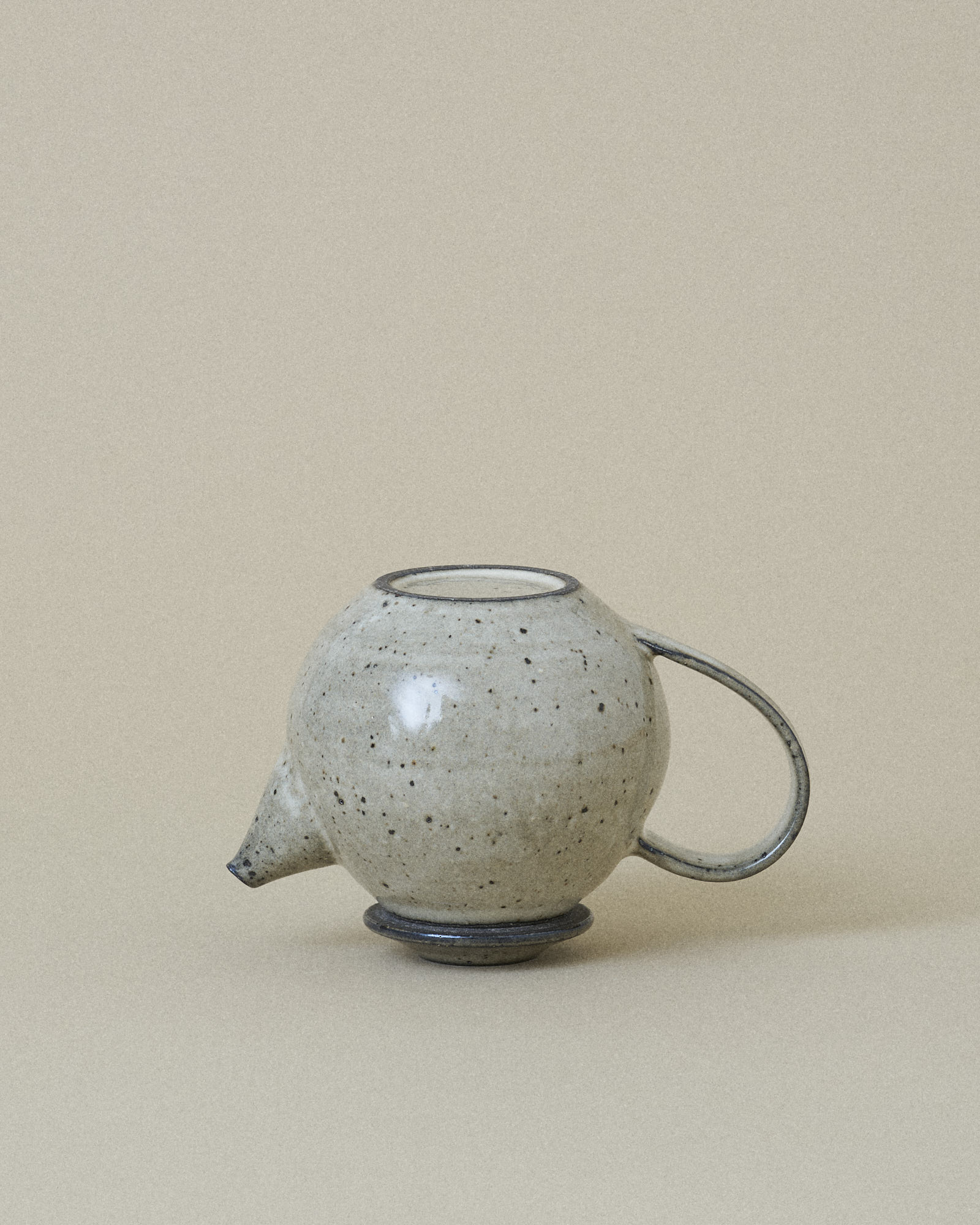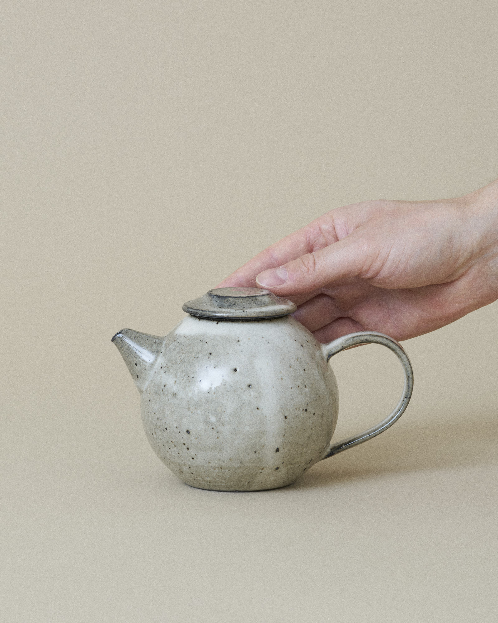 This teapot’s surface is coated in a serene, speckled stone-grey glaze. The exterior showcases artful glaze variations, with white flowing streaks that highlight the teapot’s unique handcrafted form. The seamlessly crafted tea strainer, built right where the spout begins, ensures all tea leaves remain inside while pouring your favorite teas.