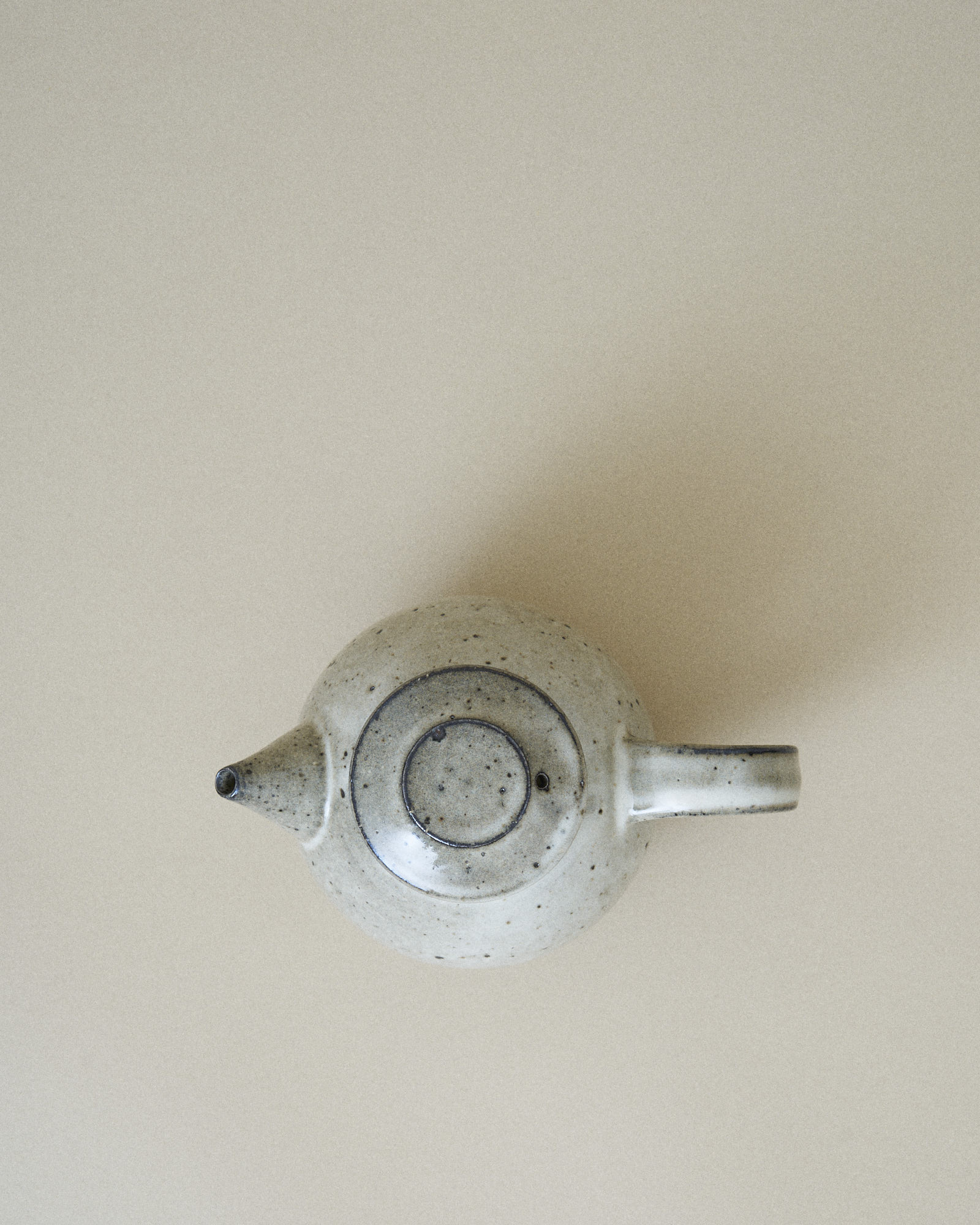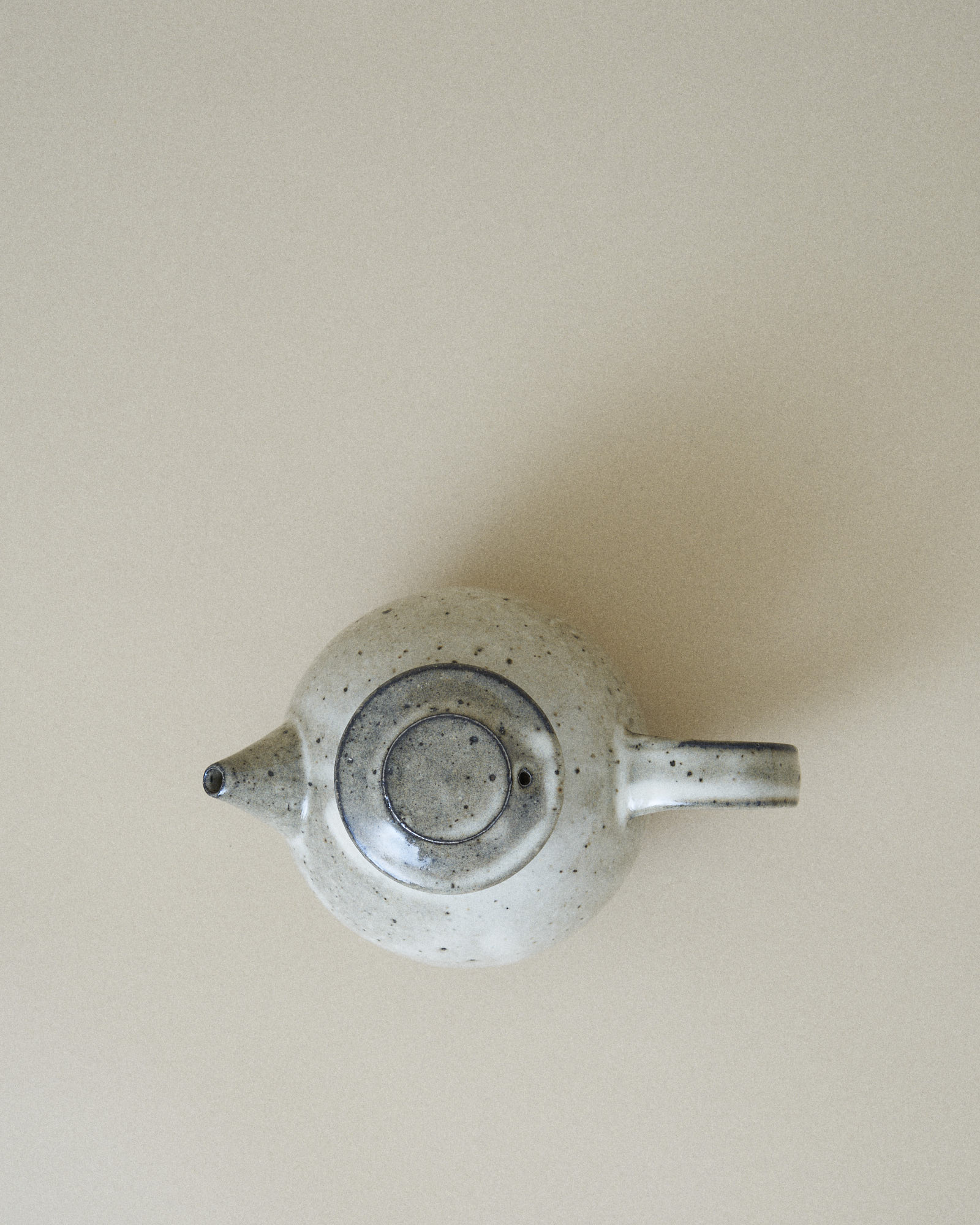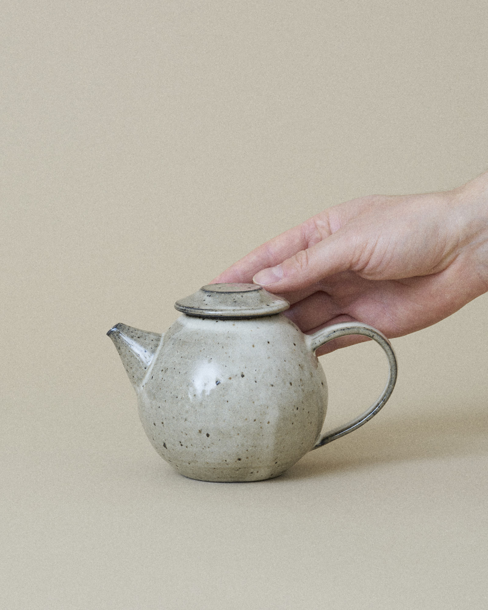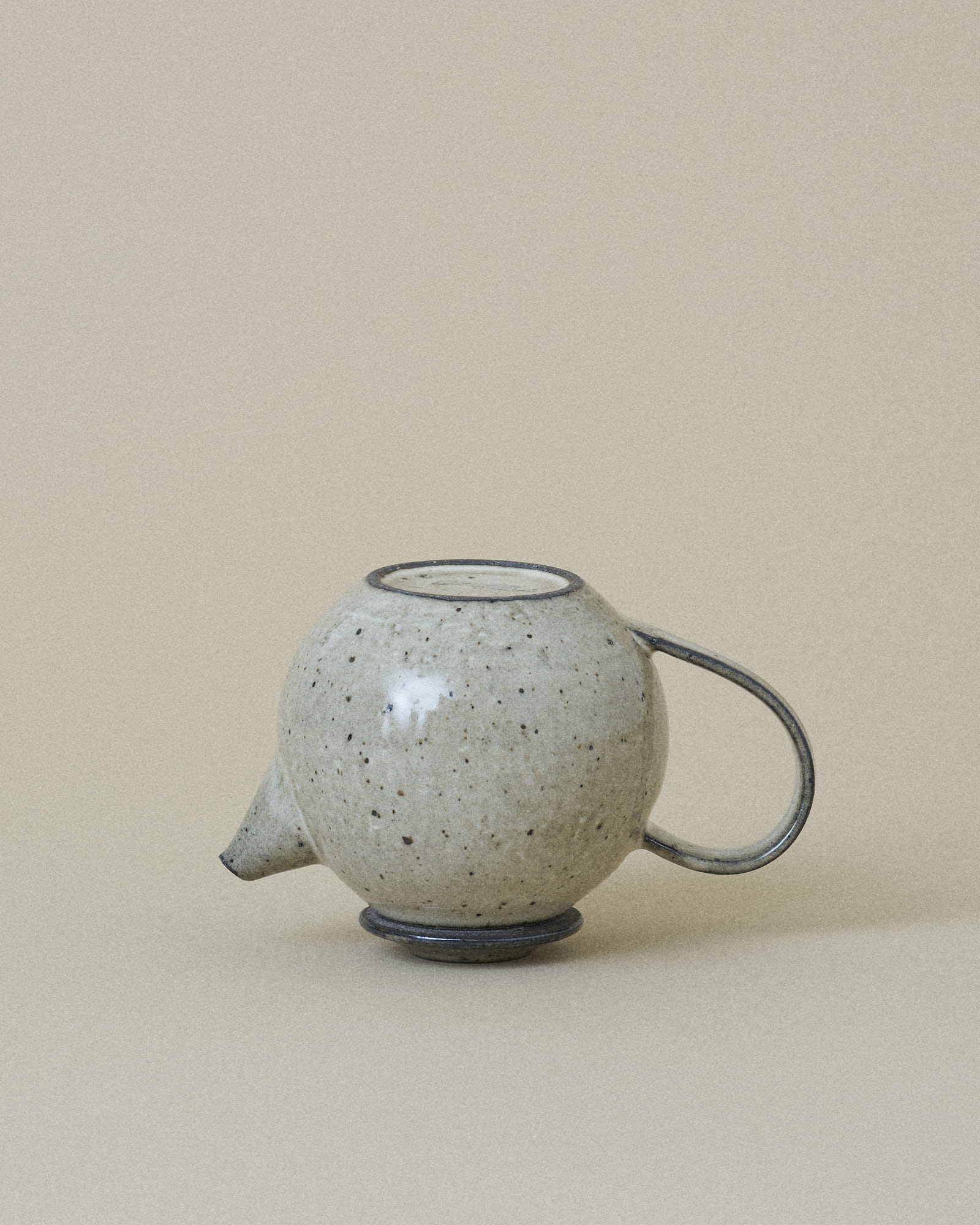 This teapot’s surface is coated in a serene, speckled stone-grey glaze. The exterior showcases artful glaze variations, with white flowing streaks that highlight the teapot’s unique handcrafted form. The seamlessly crafted tea strainer, built right where the spout begins, ensures all tea leaves remain inside while pouring your favorite teas.